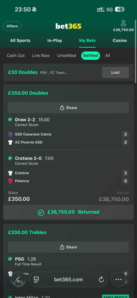 STAKE: 350,00 Euro PROFIT: 36,750,00 Euro
